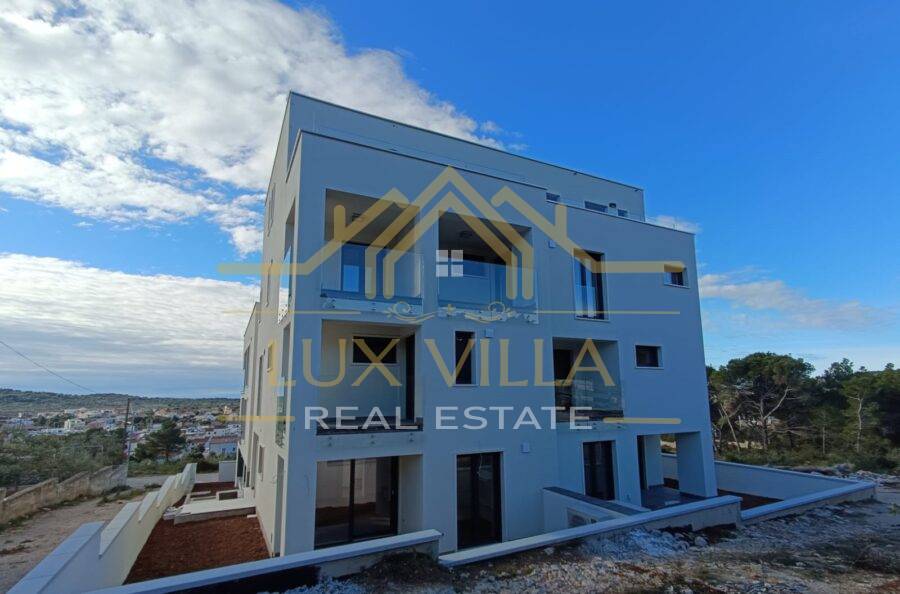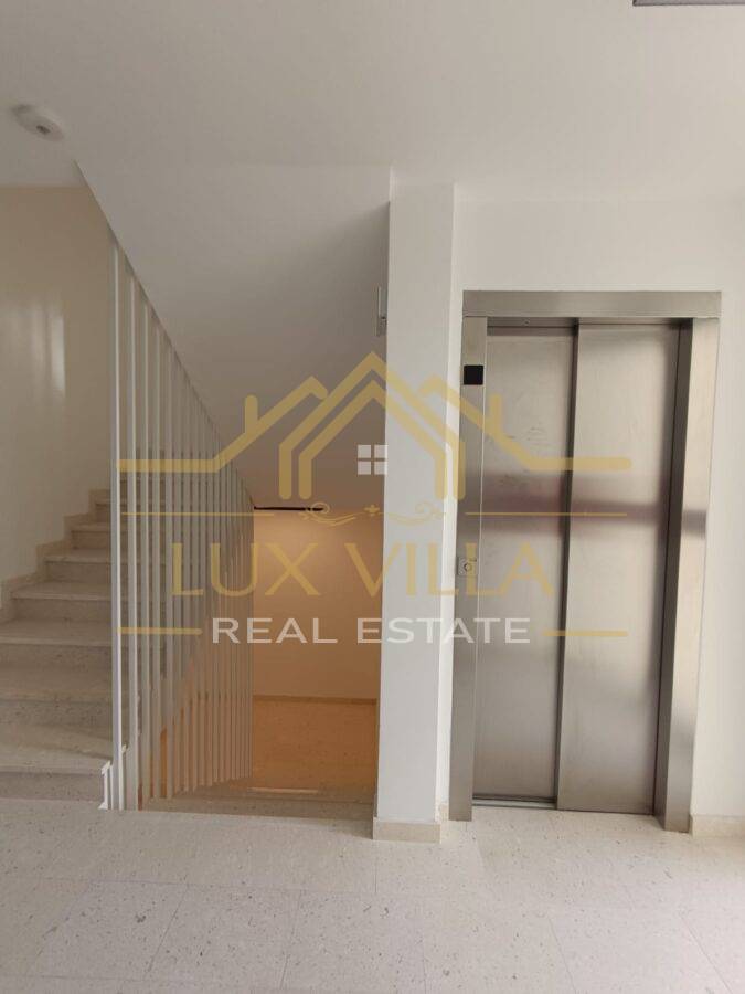 The apartment occupies the first floor of a new luxurious building with and elevator.