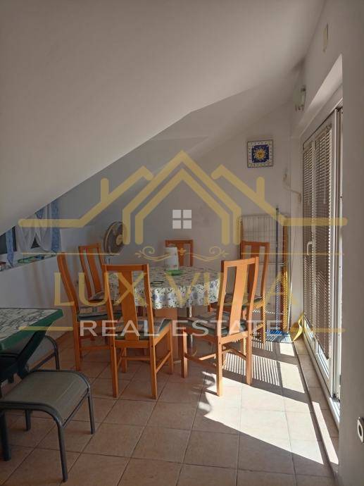 In the attic there is a kitchen with a dining room and an exit to the terrace with a beautiful panoramic view of the sea and the islands.