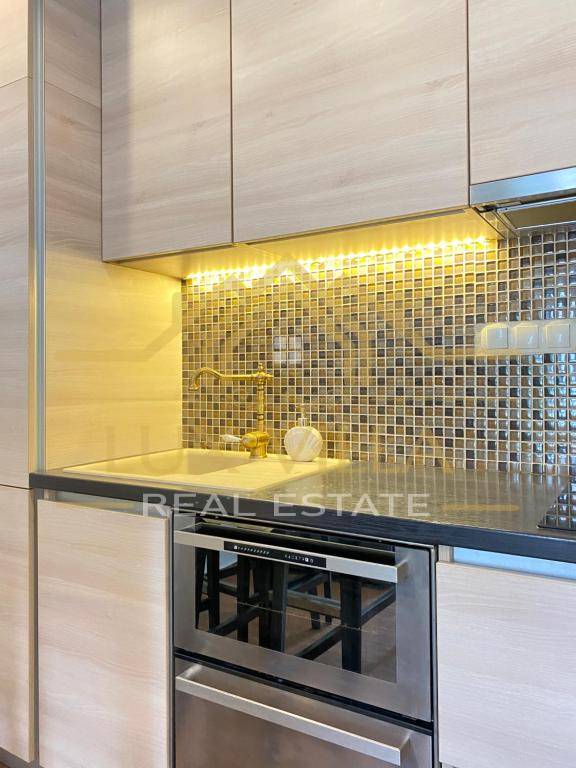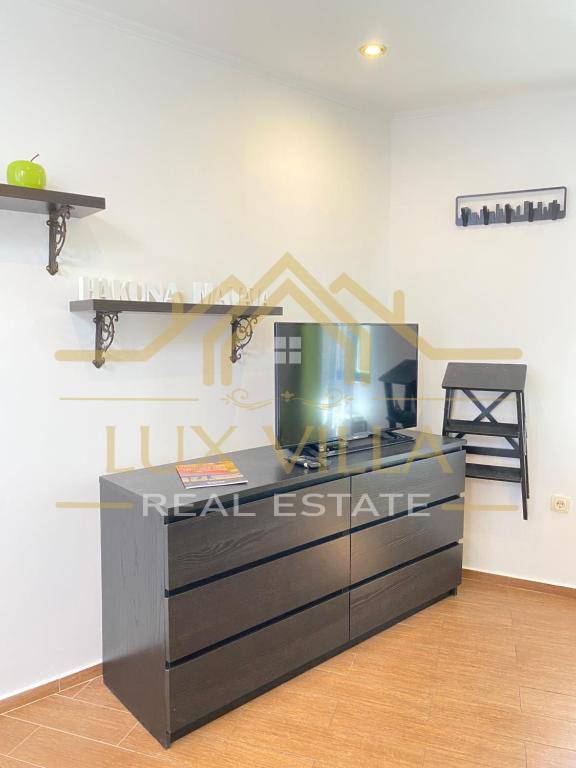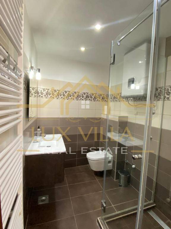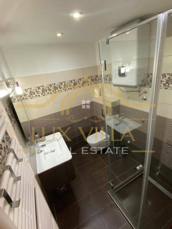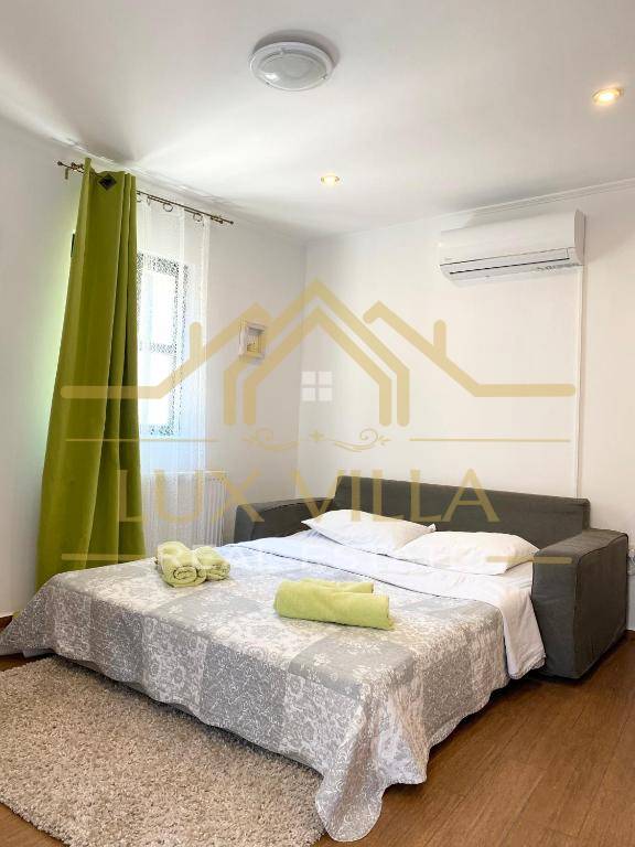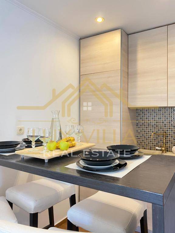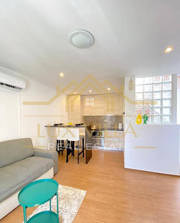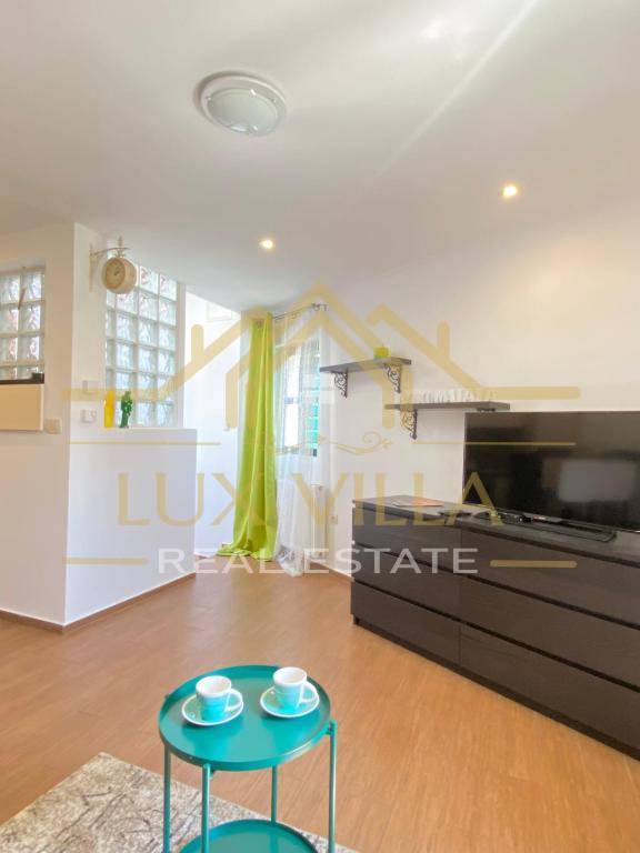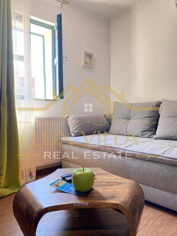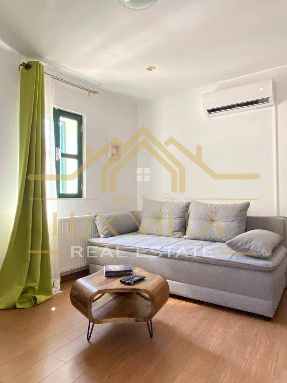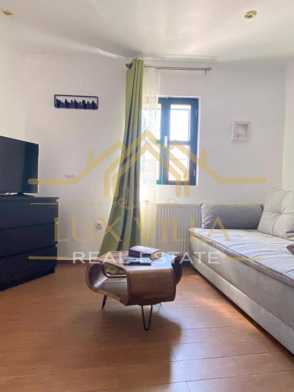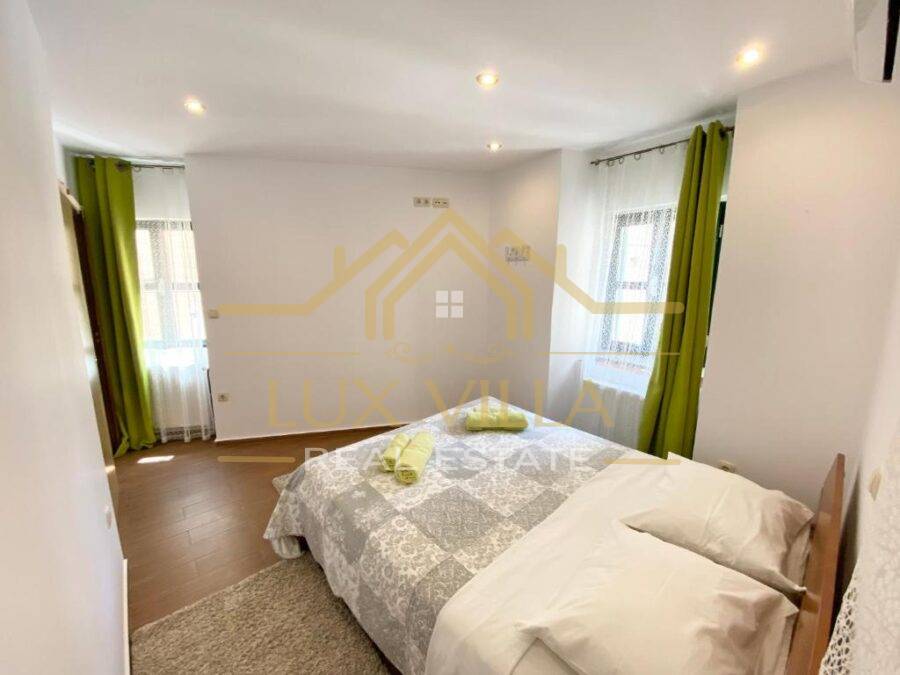 The furnished one-bedroom apartment of 80 m2 has a separate entrance and consists of the first floor where there is a bedroom with a double bed and a bathroom. An internal staircase leads to the second floor where there is a living room with a kitchen and dining room.