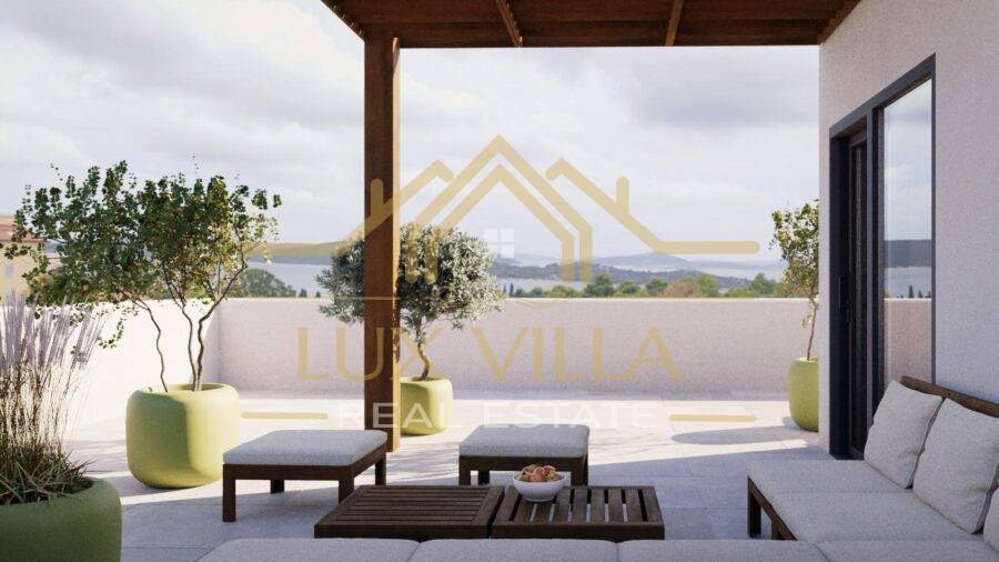 On the second floor there is a summer kitchen, toilet and a roof terrace with a sea view and a jacuzzi.