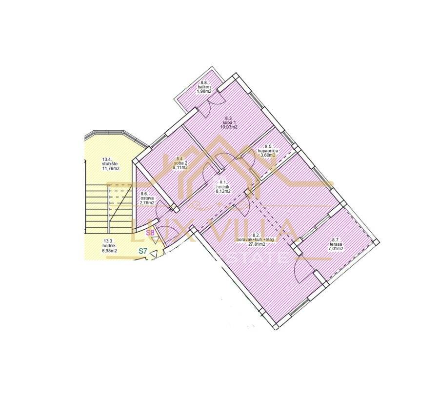 It consists of a hallway, kitchen with a dining room, a living room, two spacious bedrooms, a bathroom and a storage.